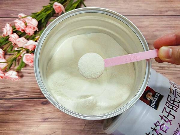 桂格好眠亮顏高鈣奶粉的粉質非常細緻,挖取奶粉很好取平匙。