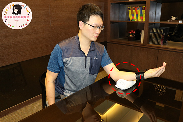 測量血壓需要確認時間外(早上起床、睡覺前測量),還要注意測量血壓的姿勢,保持血壓計與心臟同高,把折疊的毛巾放在手肘與手腕之間,毛巾避免擠壓血壓計脈壓帶,並且手心向上,不要出力。