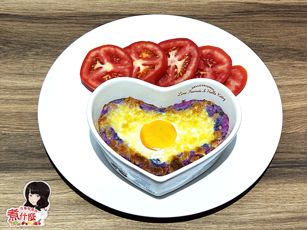 紫心地瓜110公克(約一小條)、雞蛋1顆、起司絲20公克、牛番茄100公克(約一顆)。
